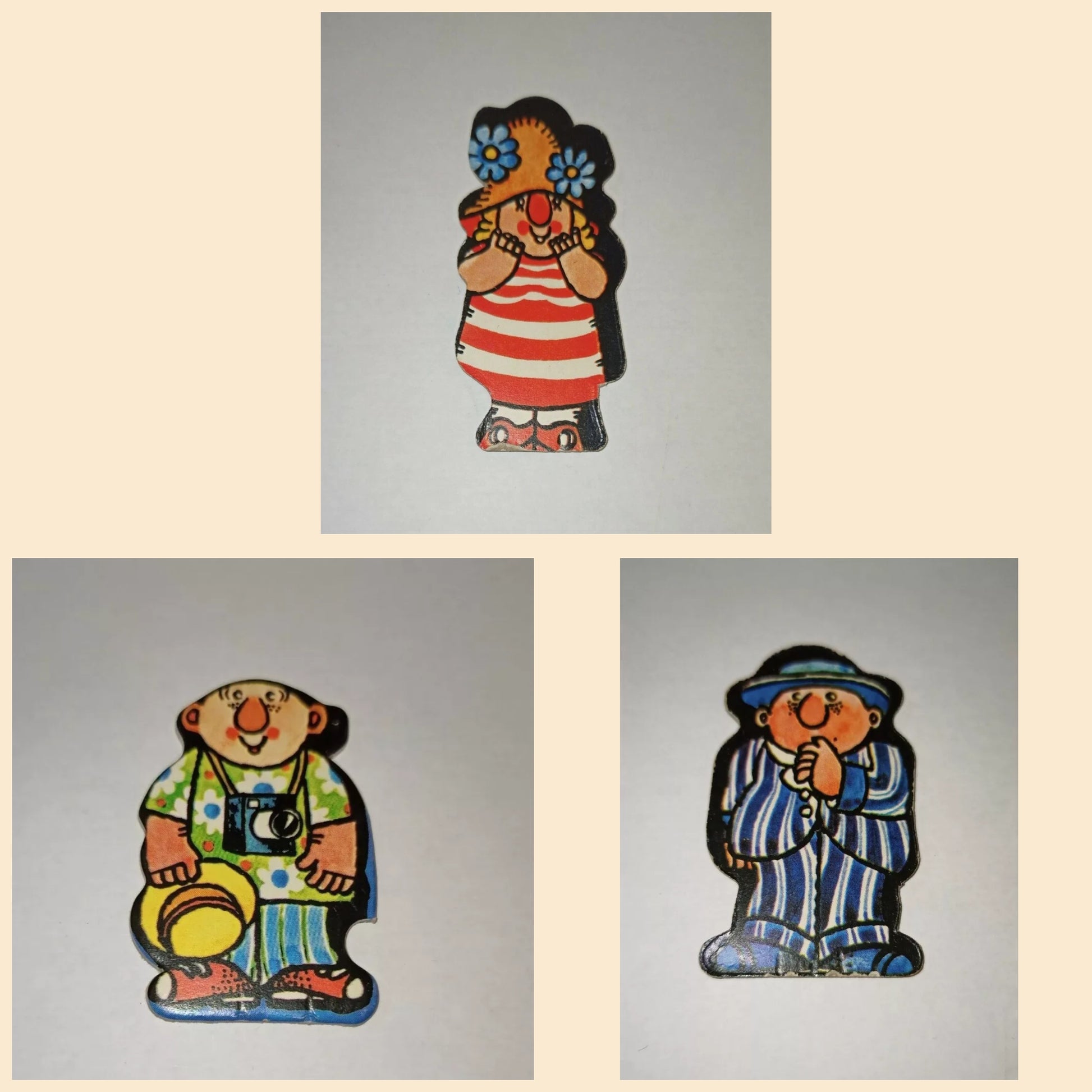Tre pedine personaggi per gioco Castello Incantato, anni 70.