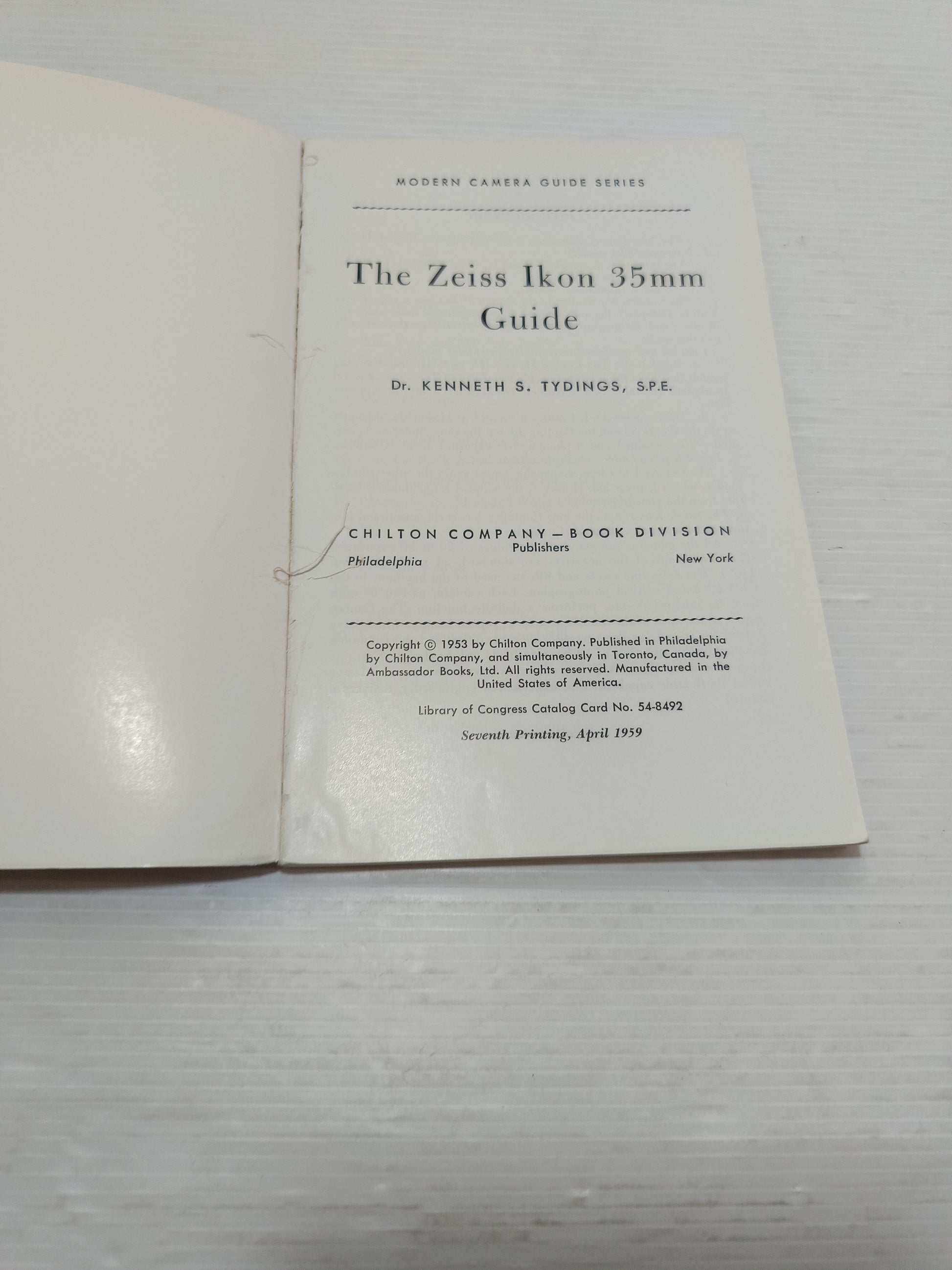 Zeiss Ikon 35mm Guide Dr.Kenneth S.Tydings Settima Edizione 1959