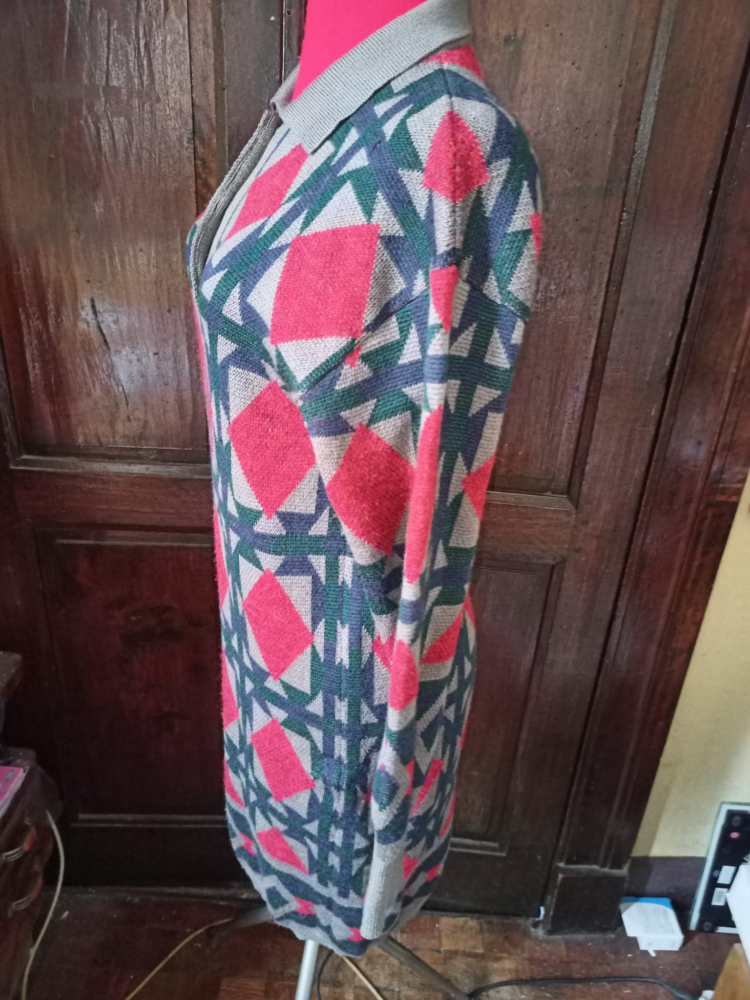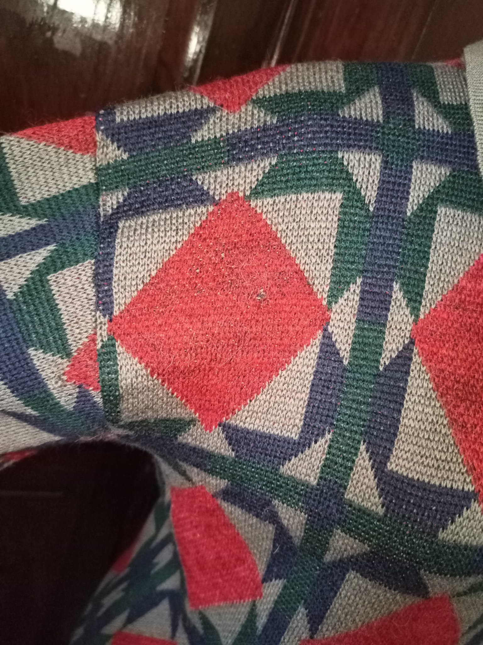 Colori: blu, verde e rombi bordeaux su sfondo tortora.