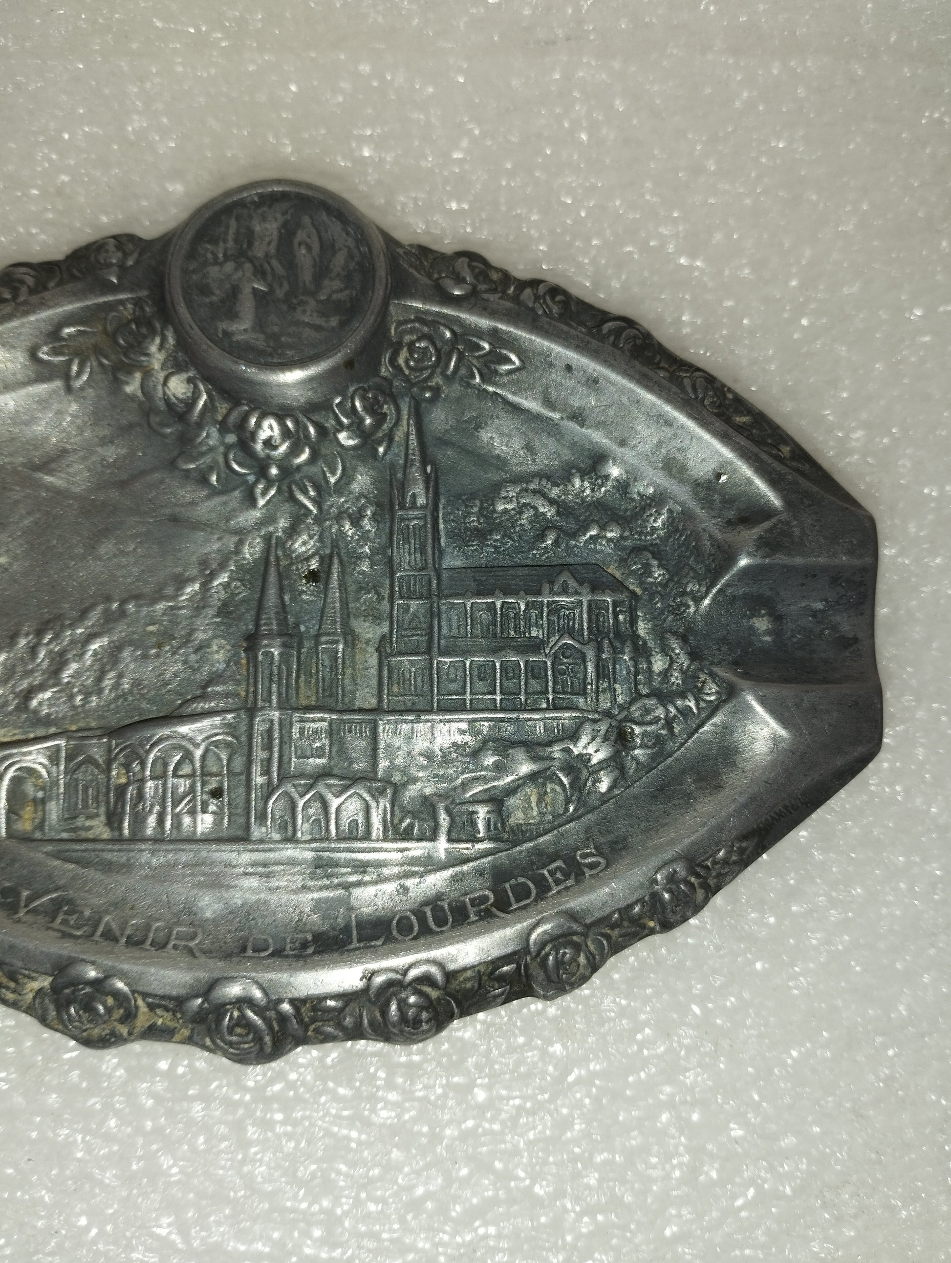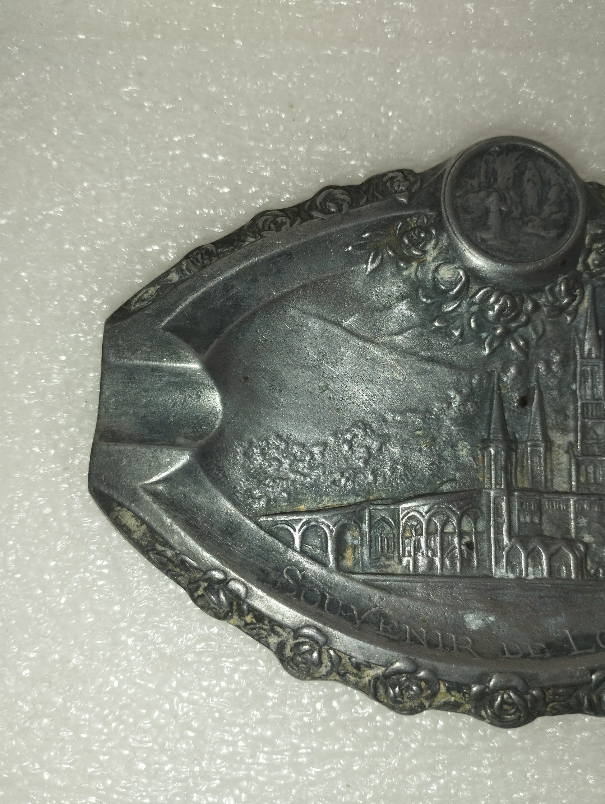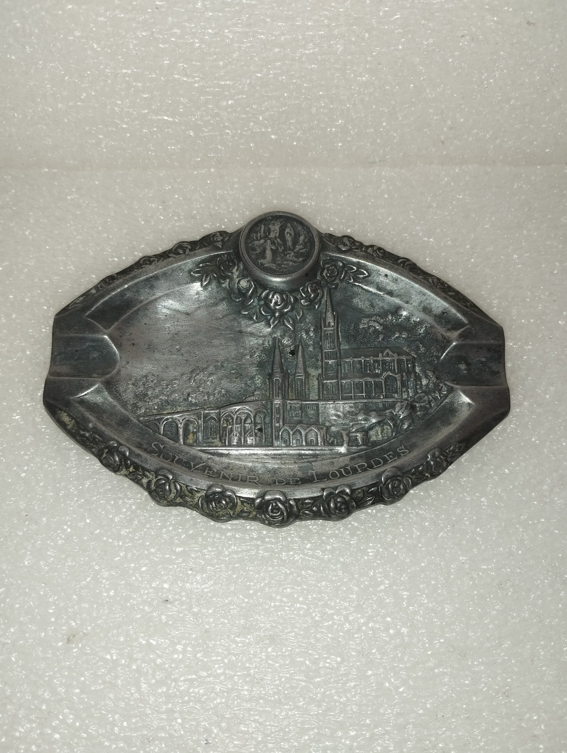 Antico Posacenere Souvenir De Lourdes In Metallo