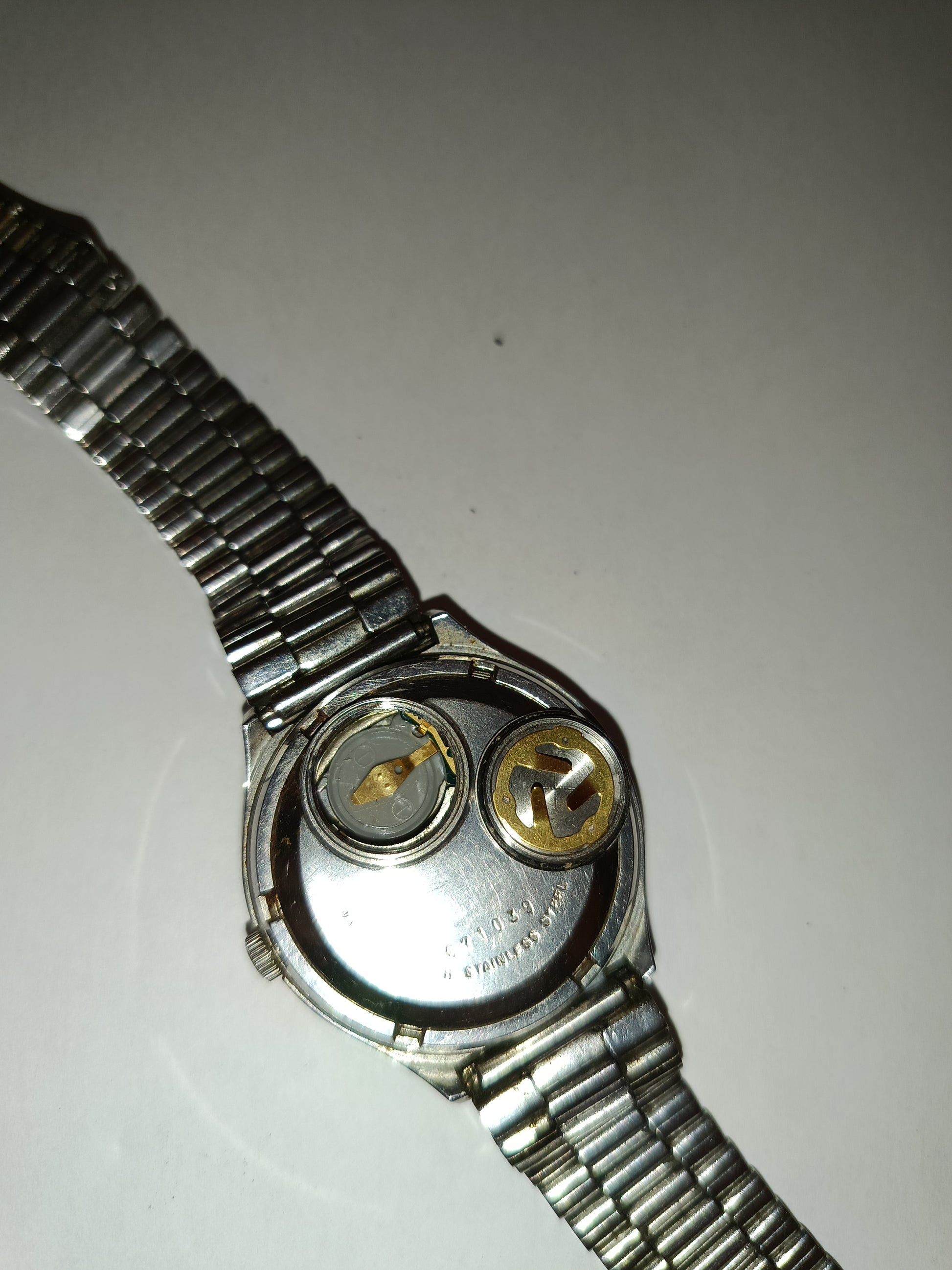 Preciso che l' orologio inserendo la pila funziona per un po' e però poi si ferma.In più il cinturino in metallo è staccato e va sistemato.Per questo motivo viene venduto con la formula visto piaciuto per essere riparato senza nessuna garanzia fornita sul suo corretto funzionamento.Se non siete d'accordo per cortesia non fate offerte.Grazie