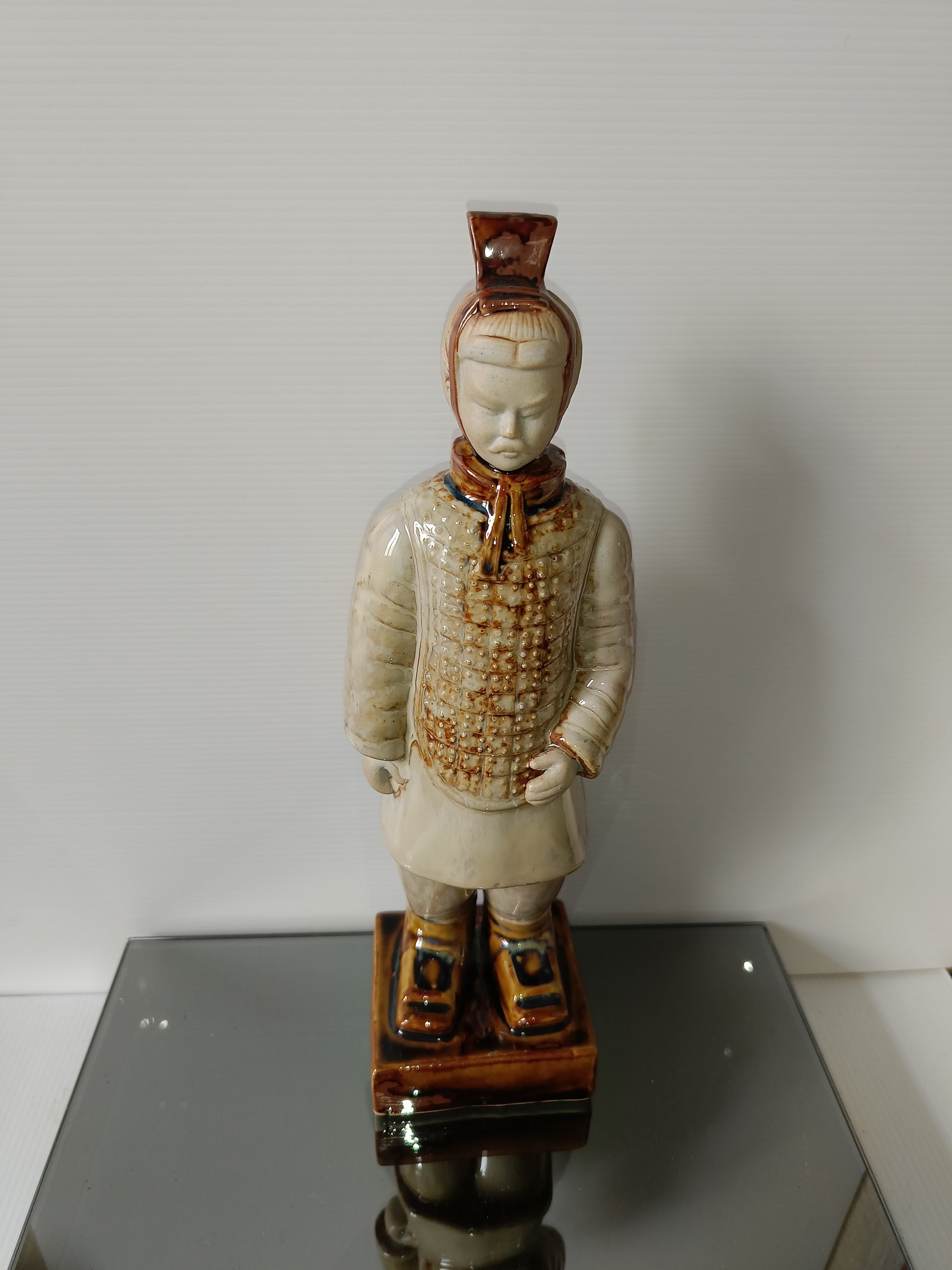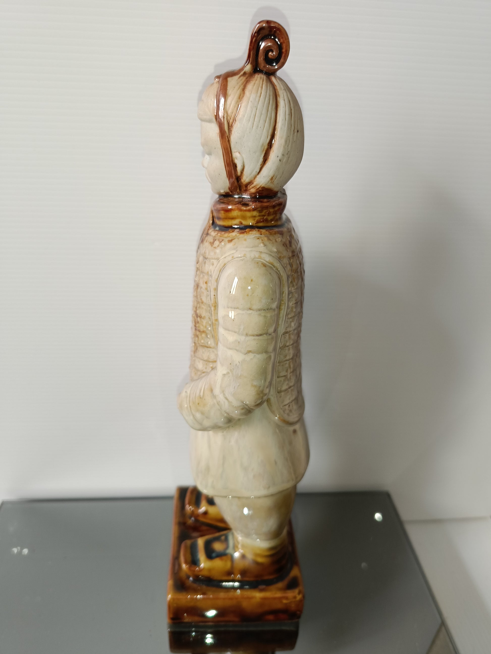 Statua Guerriero Cinese In Ceramica Smaltata Vintage